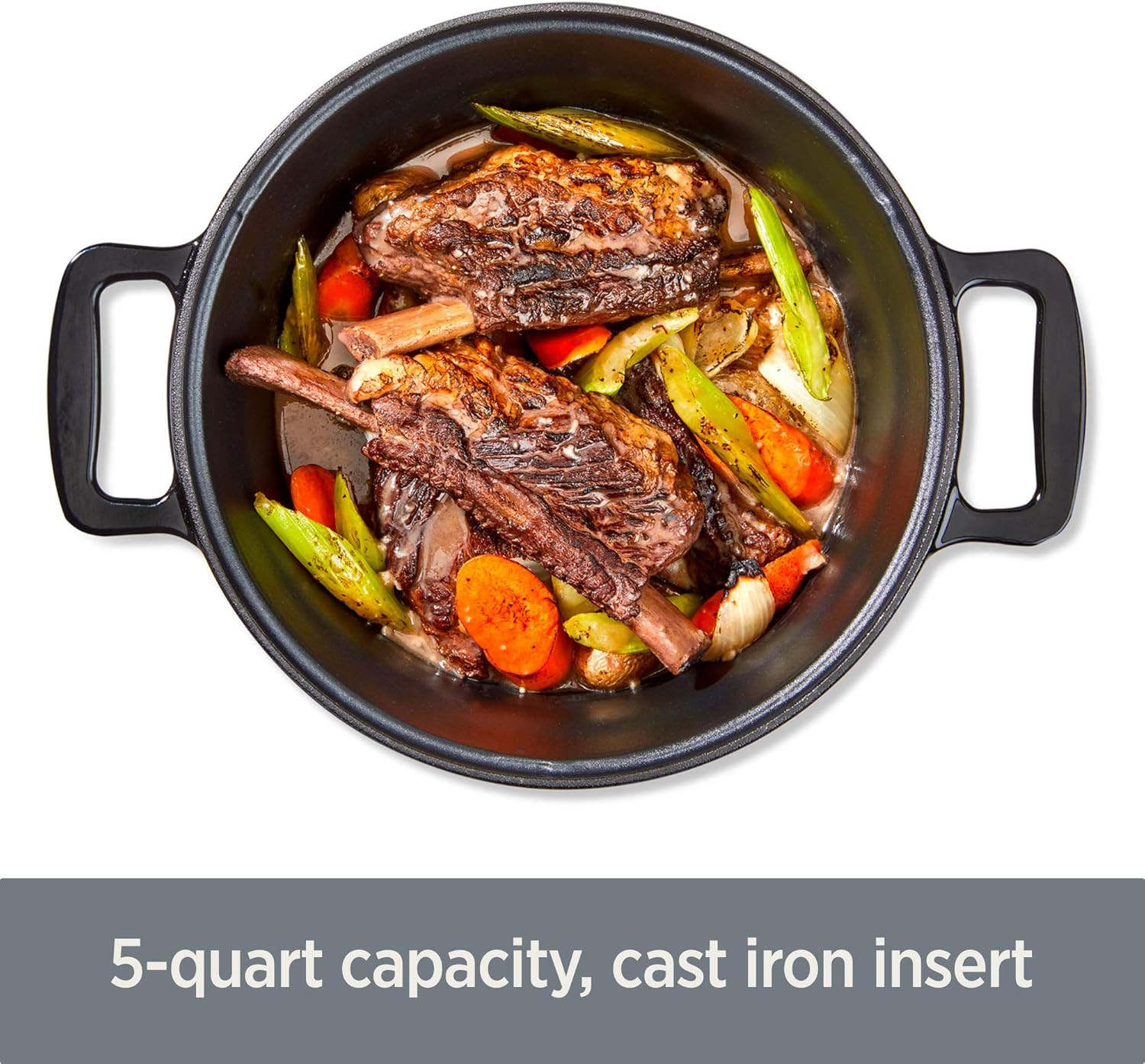 All-Clad 5 Quart 7-in-1 Electric Slow Cooker with Stainless Steel and Cast Iron, 1200W - Black Enamel Crock